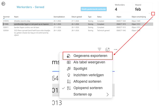 Om de tabel te exporteren druk je op de drie puntjes.
